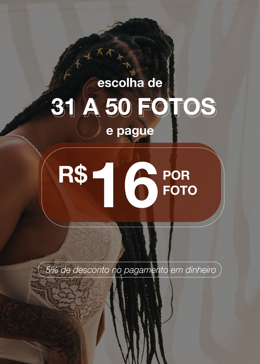 O ensaio é feito por mim e por você. Vamos fazer de tudo para que ele seja do jeitinho que você quer. Vamos juntos decidir os locais, os looks, make e cabelo. As referências você pode mandar a vontade, ou podemos criar o ensaio do zero. Tudo depende de como você quiser que seja. O ensaio é mega descontraído (eu sou muito tagarela kkk) e quero que você se sinta super a vontade pra falar do que quiser, afinal, a experiência vai muito além das fotos.